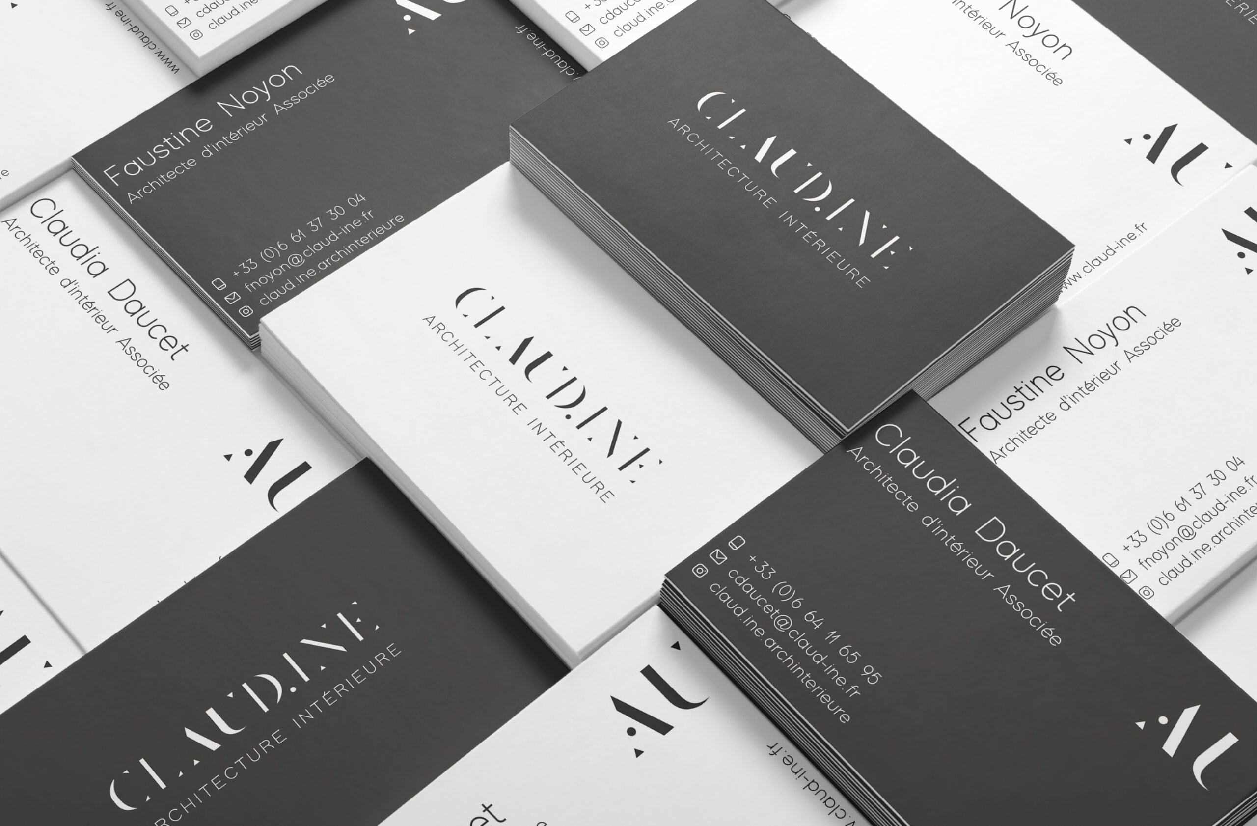 L’identité de Claudine joue sur le contraste d’une typographie fine et classique, une Bodoni modifiée.
